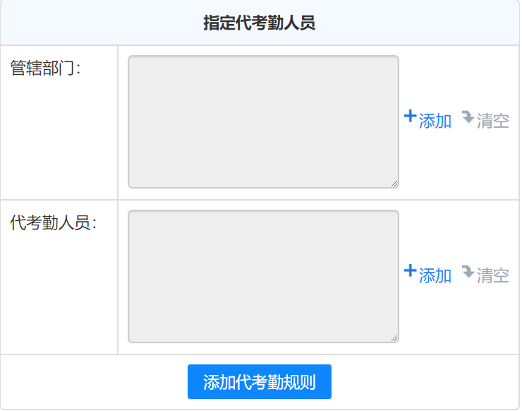 通过人员的设置,被设置的人员可以在他代考勤的范围内替其他人员进行外出、请假、出差、加班的登记操作,方便员工的考勤等管理。