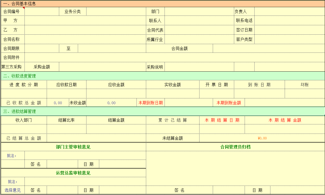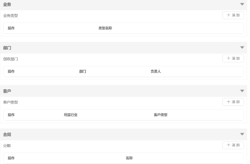 除了上述主要表单之外,合同管理还需要一个基础设置表单以录入一些基础信息,如下图: