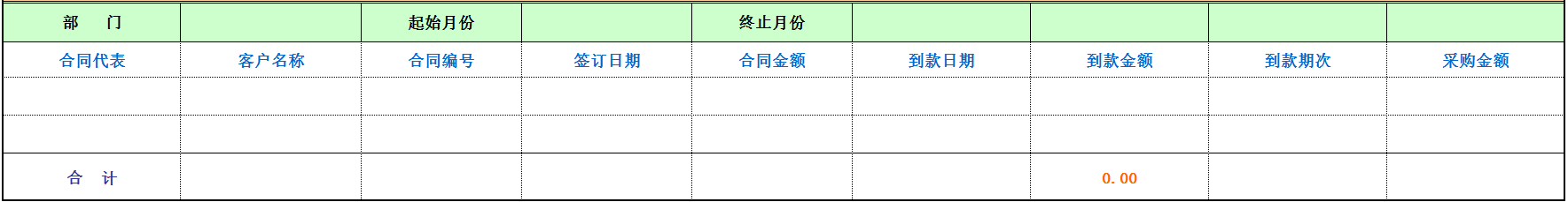 合同汇总可以根据部门、起始时间、结束时间三个参数汇总合同以及收款信息。