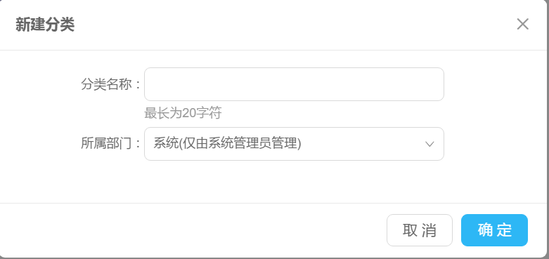 分类名称: 指创建的分类名称,分类名称不能重复;最长为20个字符。分类名称的命名规则为:以汉字、英文字母、下划线开头,后接汉字、英文字母、下划线、数字的任意组合。