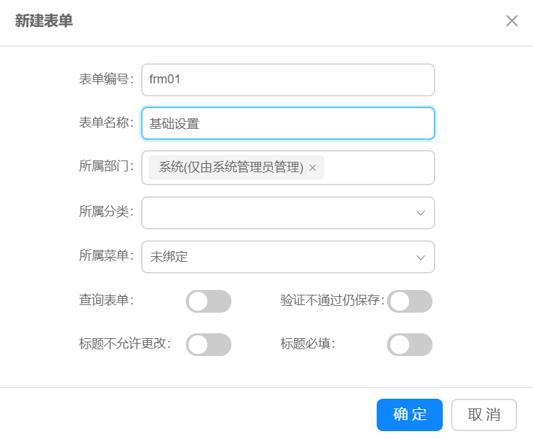 表单编号: 全局唯一的编号,编号命名规则:以英文字母、下划线开头,后接英文字母、下划线、数字的任意组合,最长为256个字符。