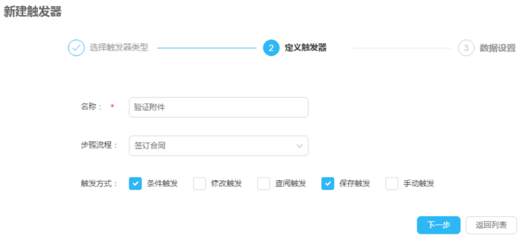 点击 确定 返回,最后点击 保存 完成回填触发器定义。
