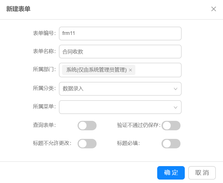 查询表单: 代表该表单为查询类表单,只能查询、查看,不能存储结果。