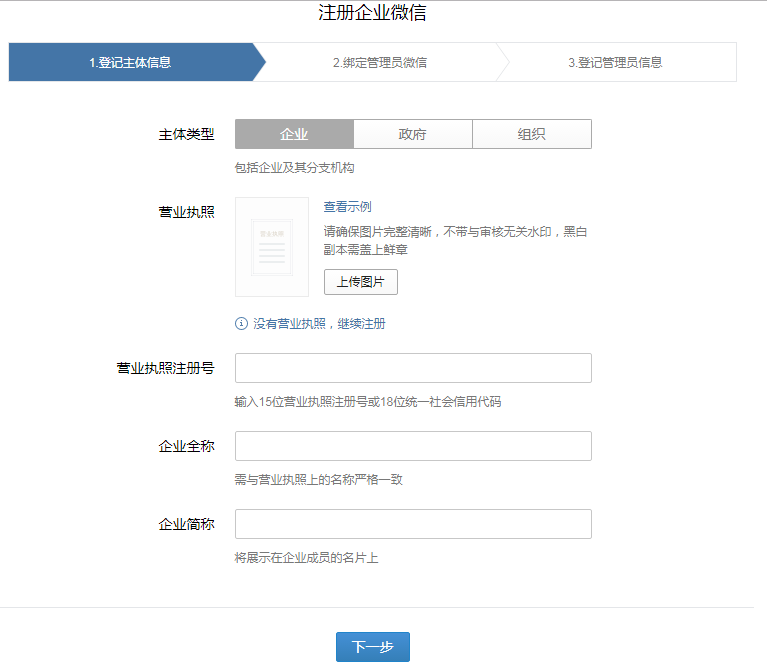 第1步:以下为企业微信号申请地址,填写相关信息即可申请成功。