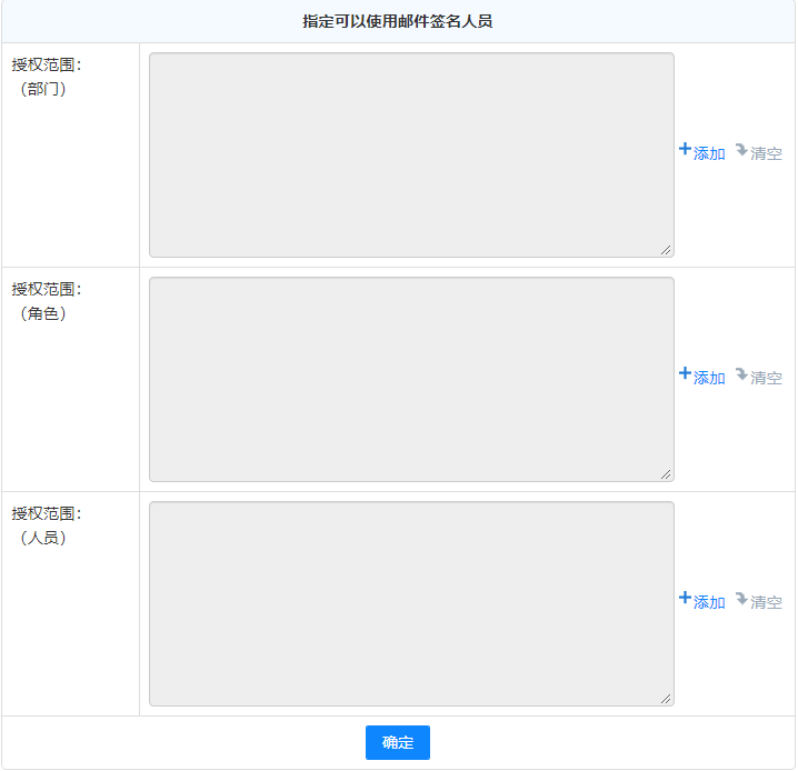 邮件签名设置可指定哪些人员可以使用邮件签名,具体可以根据部门、角色、人员来设置。具有使用签名权限的人员,在电子邮件模块中,可设置自己的签名,启用签名后,写信时会包含设置的签名信息。