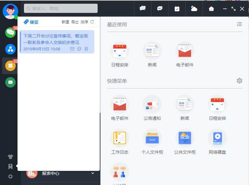 PC客户端是通达OA的有力补充,在桌面办公方面提供了更加便捷的使用方式,相对于通达OA,增强了即时通讯方面的功能,极大满足了日常办公所需。