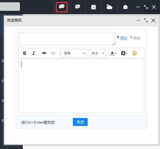 点击顶部导航群发消息图标会弹出发送微讯界面,可选择多人进行微讯群发;