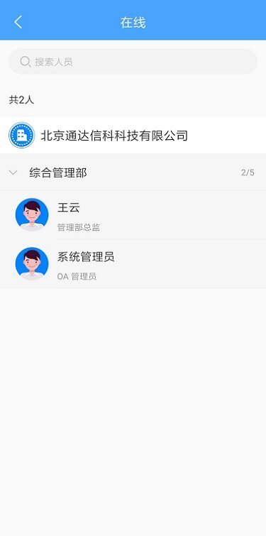 在线人员会以组织架构层级形式展示当前在线用户;