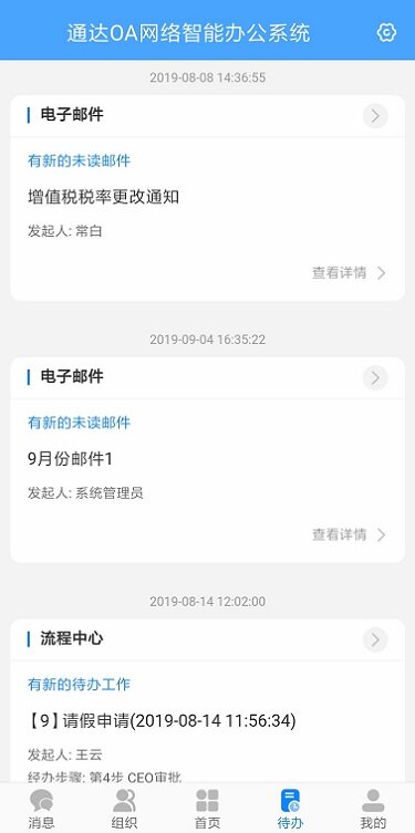 移动客户端增强了通达OA移动办公能力,方便随时随地进行工作办理,即时通讯以及待办能更好的提高工作效率,让办公更高效、更便捷。