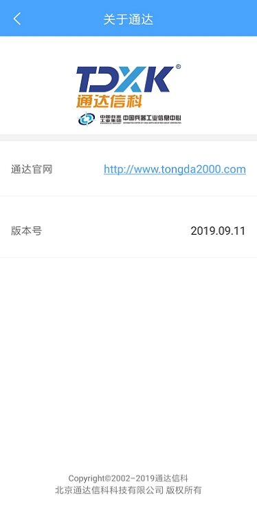 可以查看通达OA移动端的当前版本号,并可以直接点击访问通达官网;