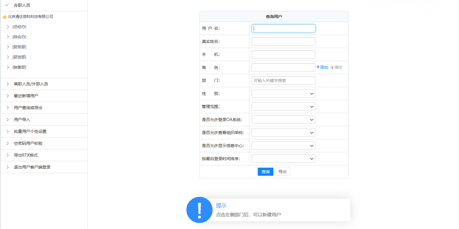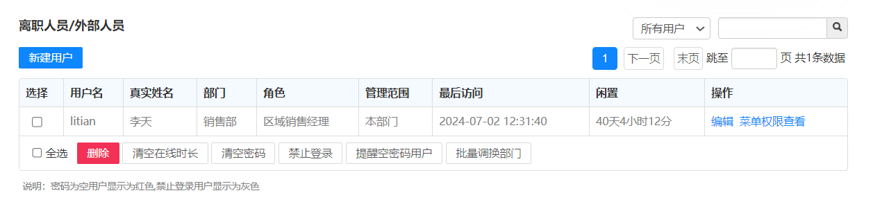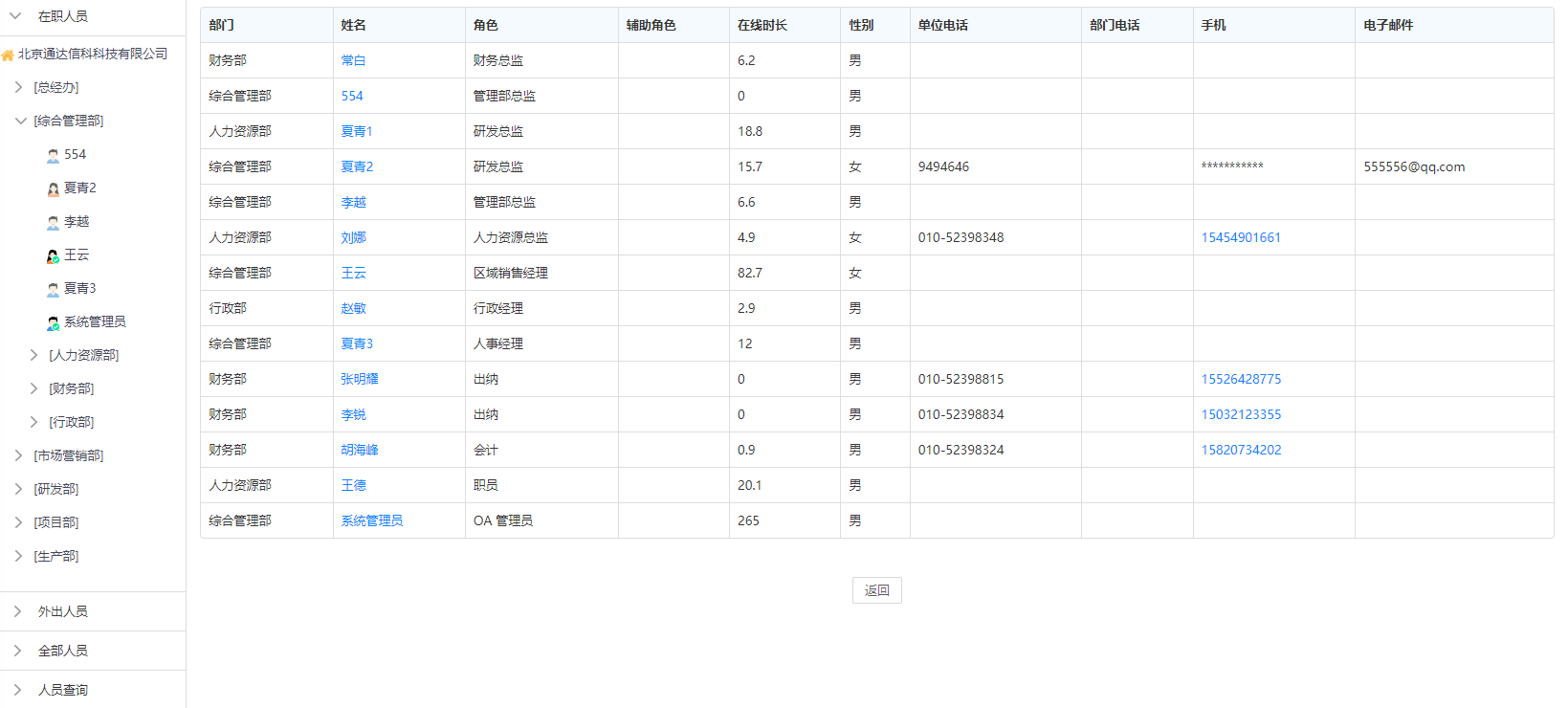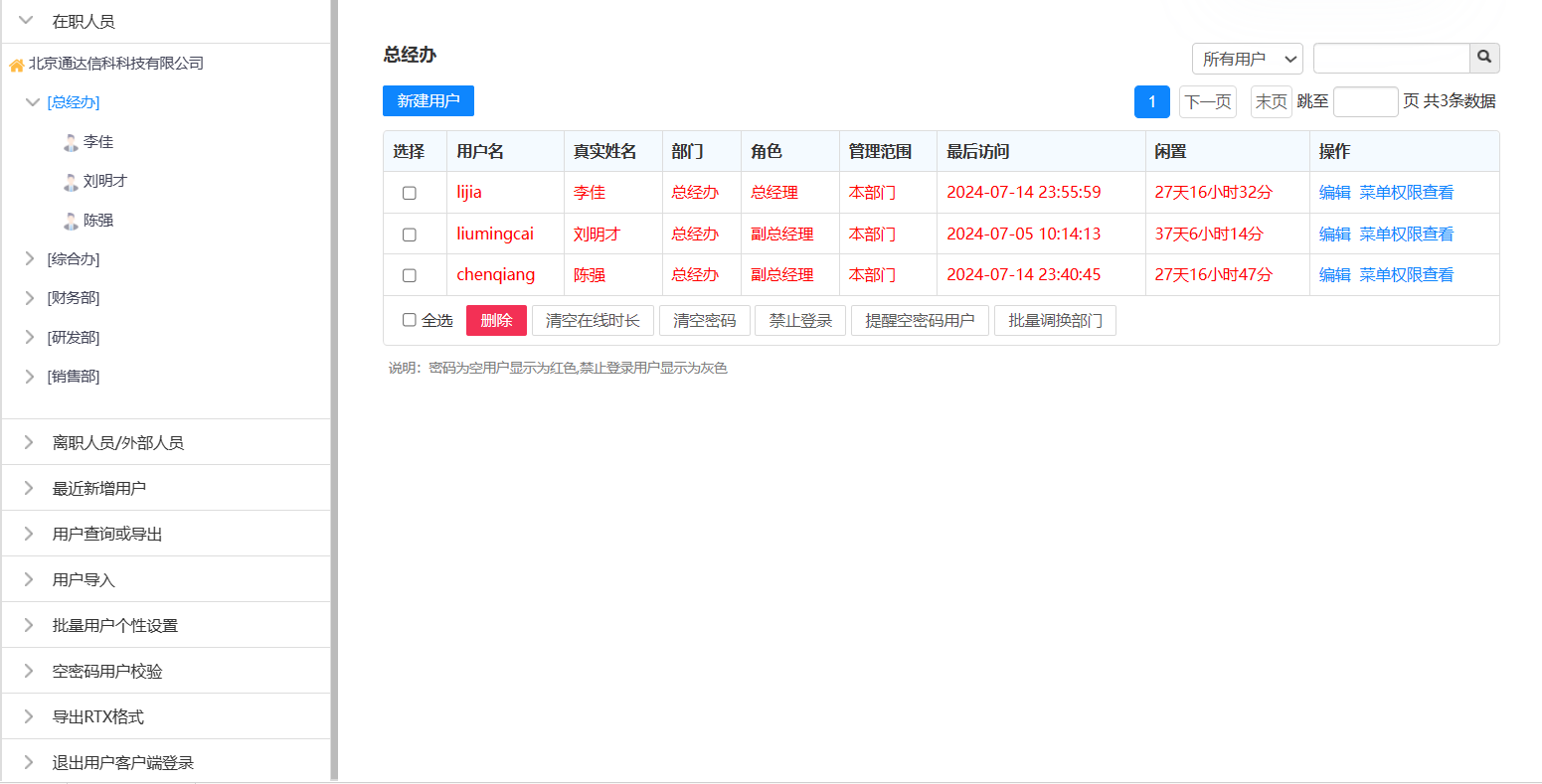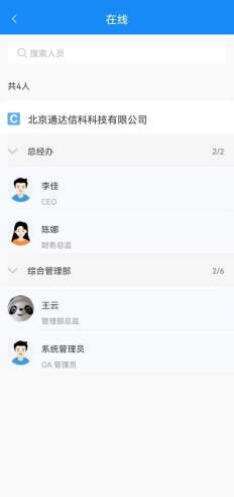 在线人员会以组织架构层级形式展示当前在线用户。