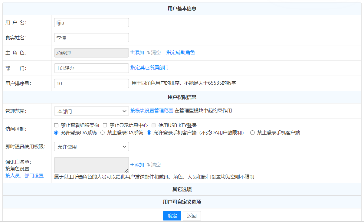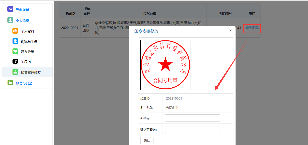 如果需要修改密码,在输入原密码,新密码及确认密码后点击确定即可完成。