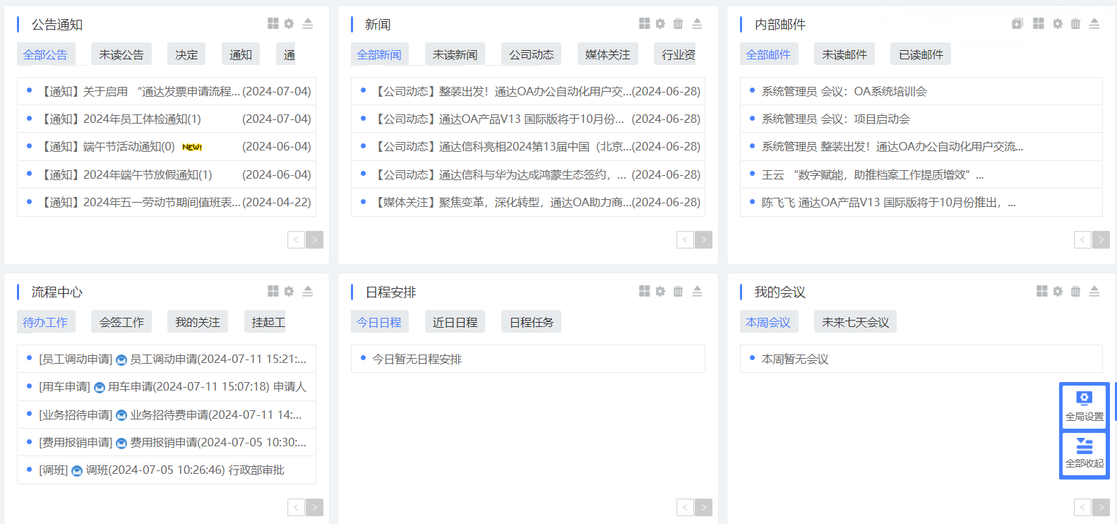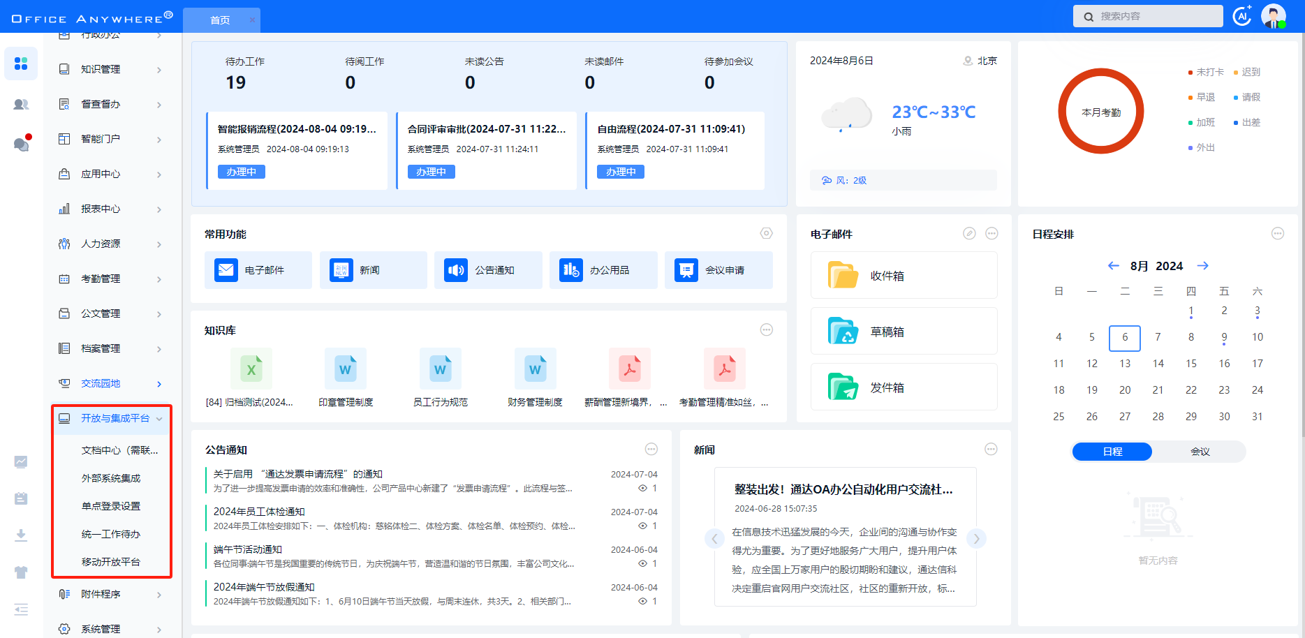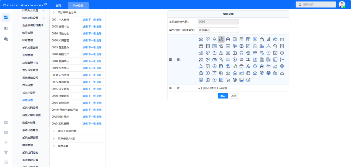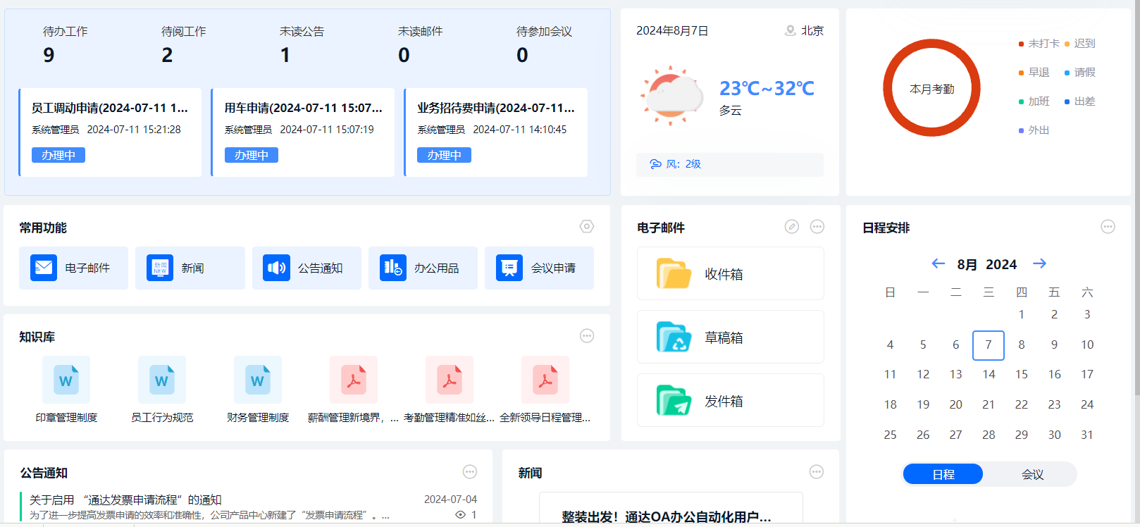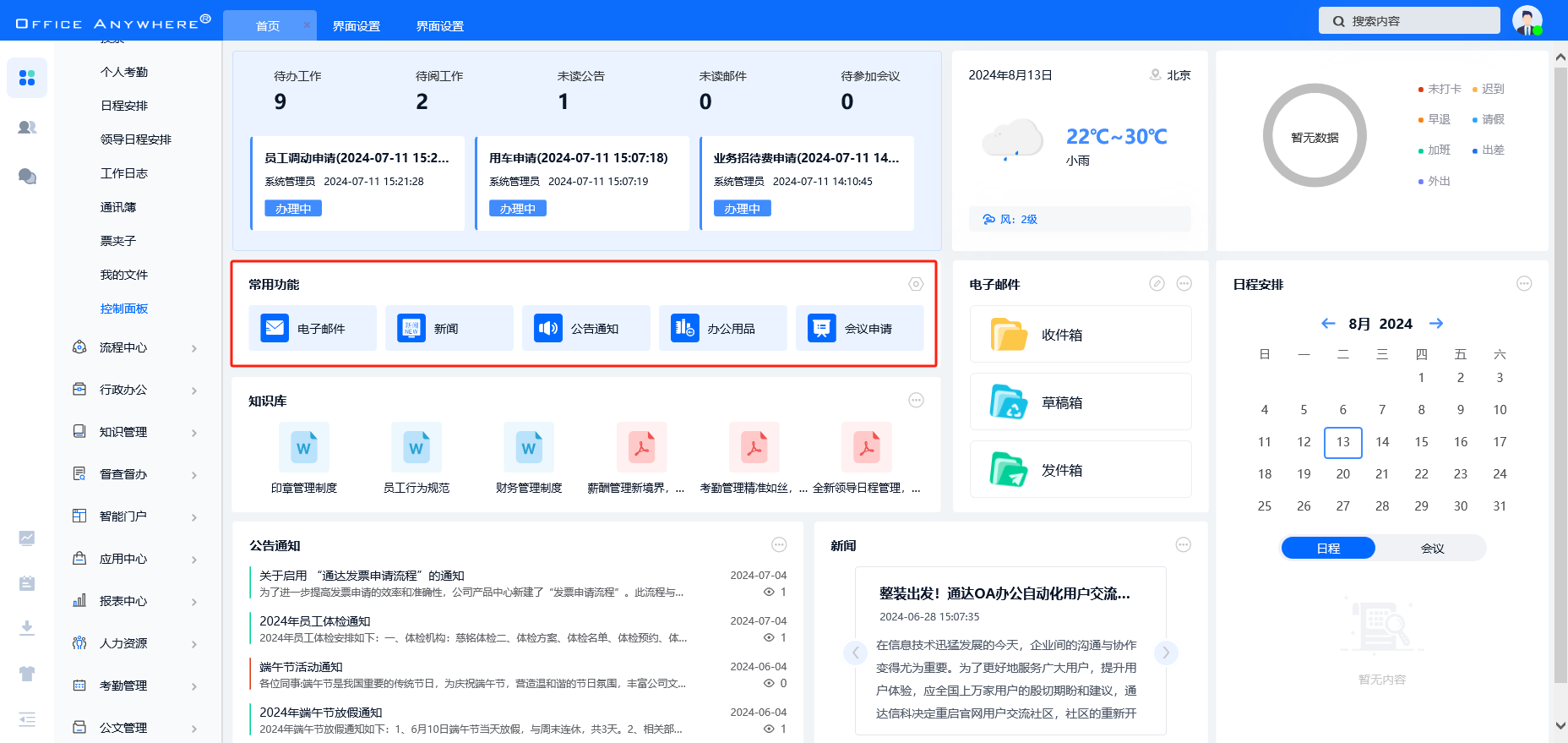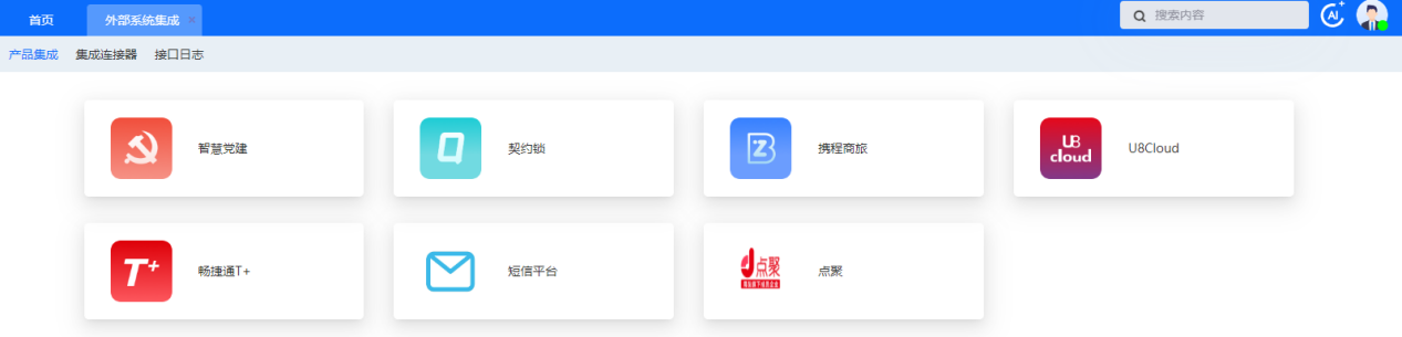 首页会展示所有权限的 OA 业务模块,点击图标可进入相应业务模块。