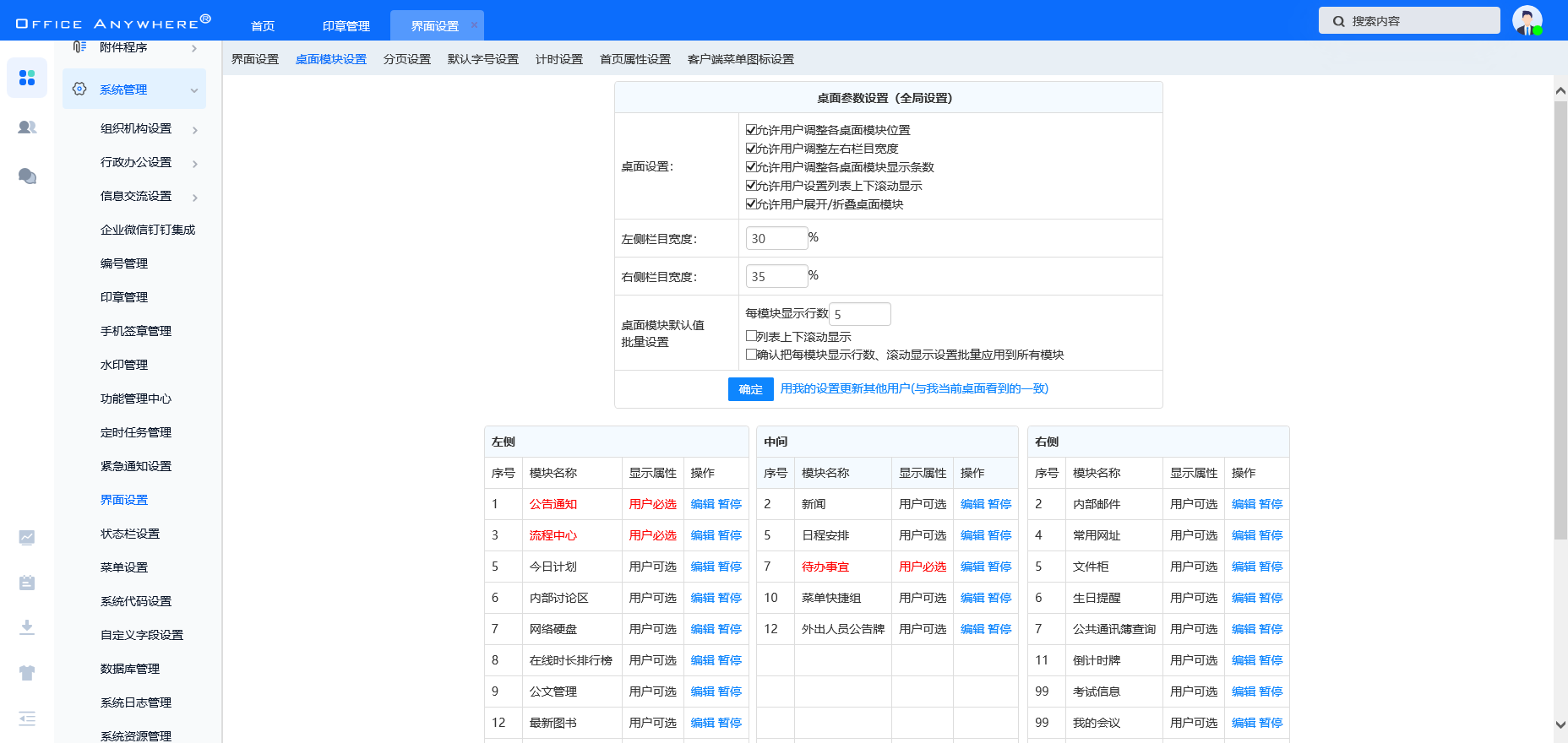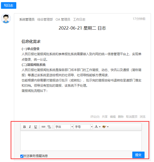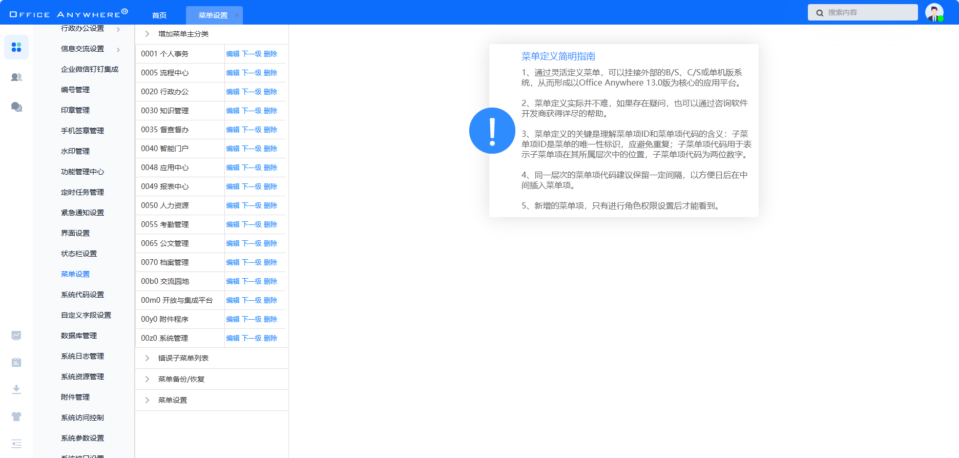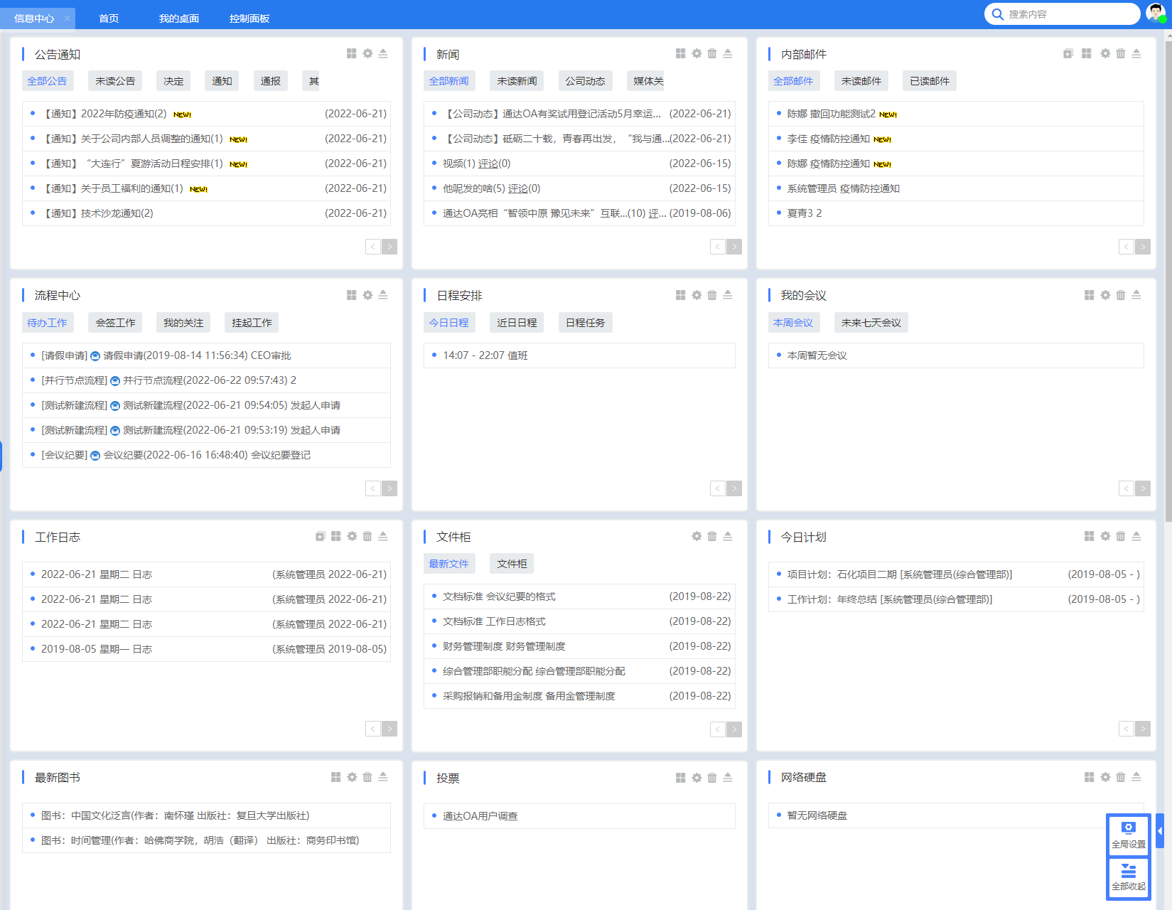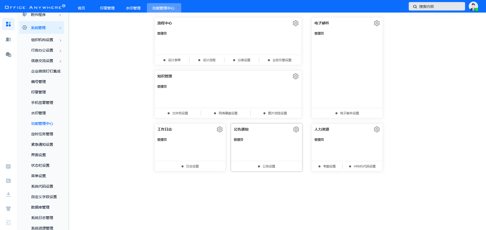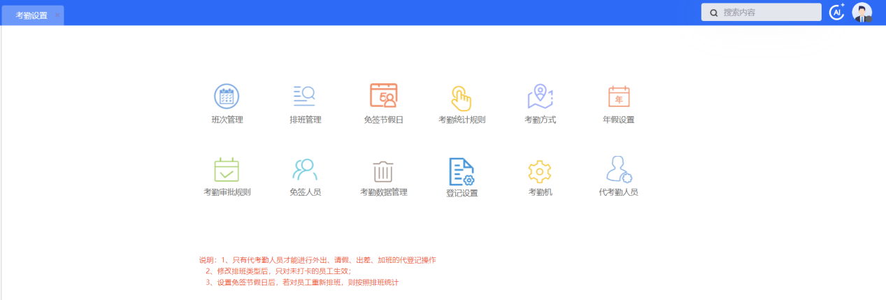 首页会展示所有权限的 OA 业务模块,点击图标可进入相应业务模块。