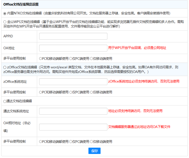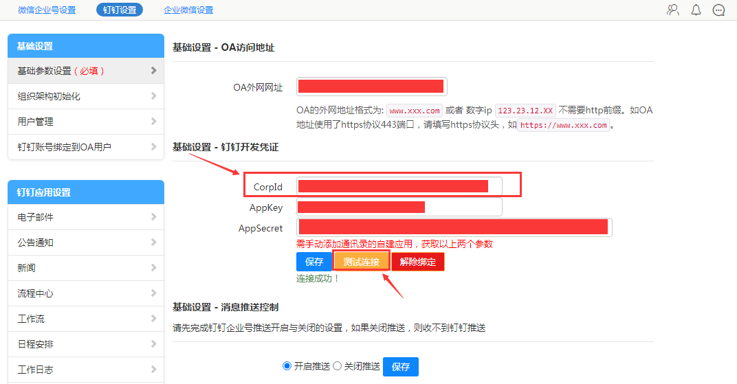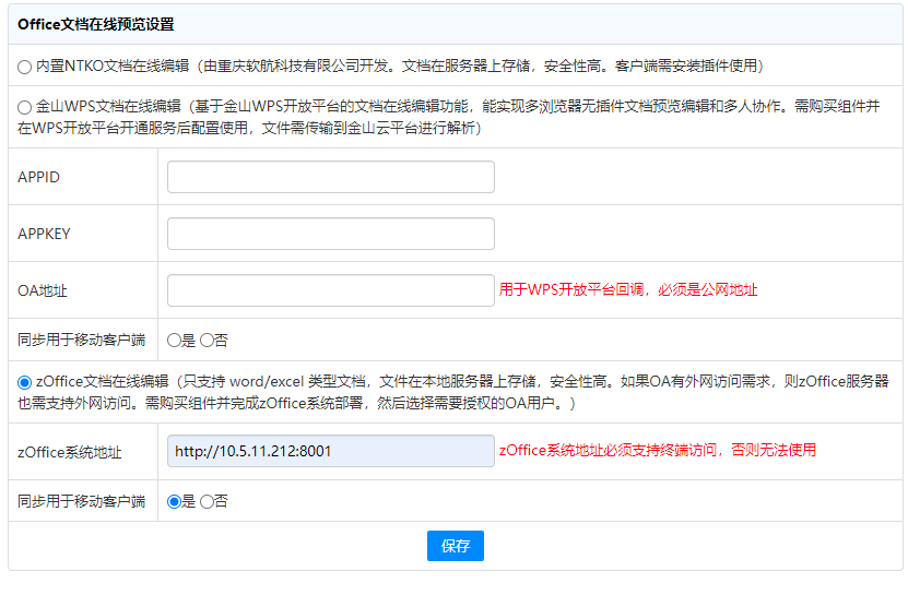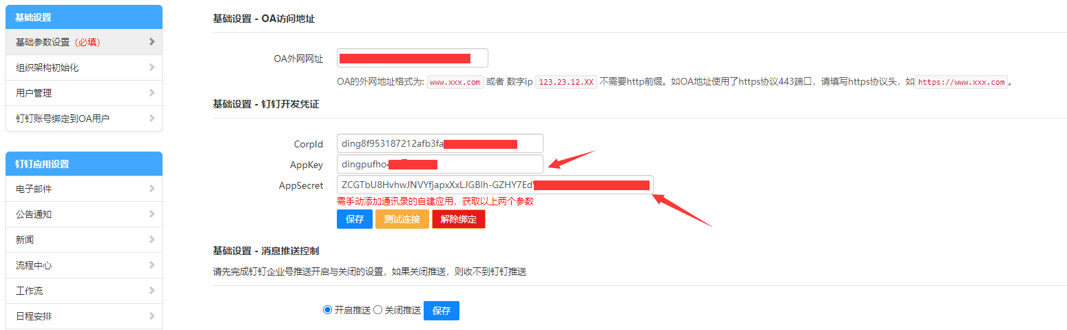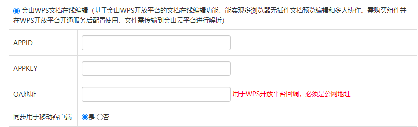 1\. OA 服务器地址和端口号。