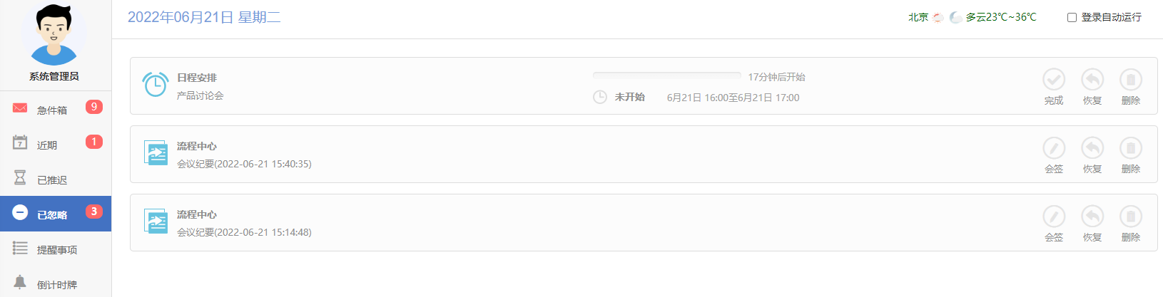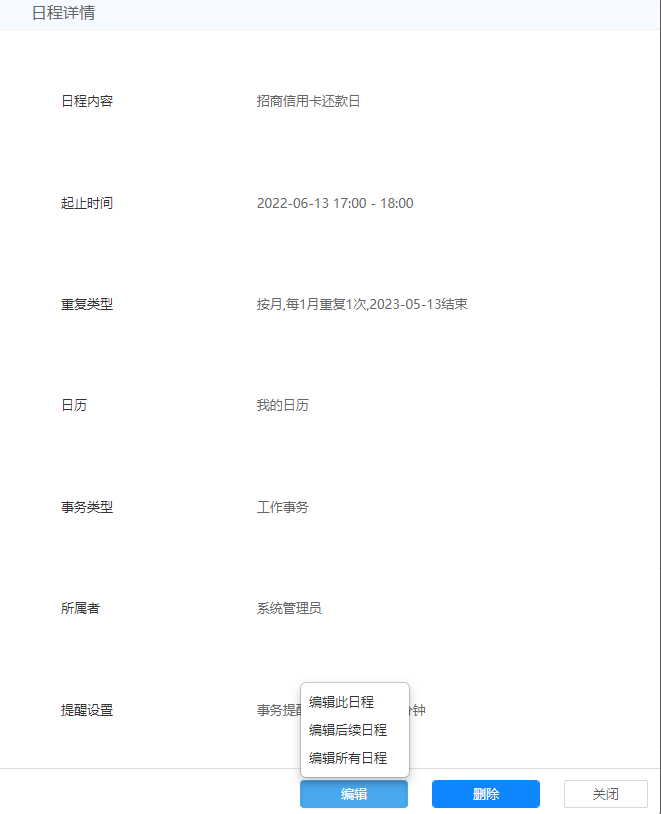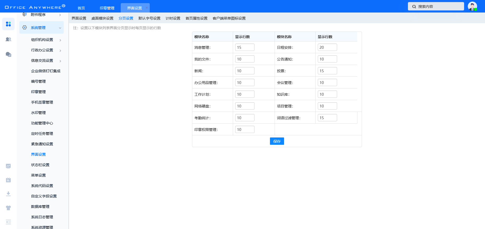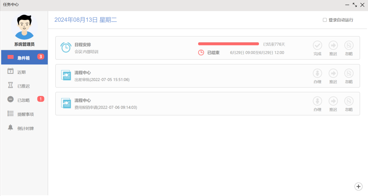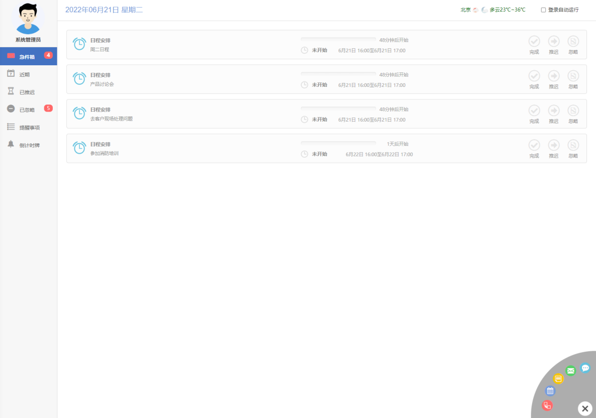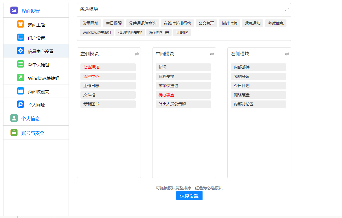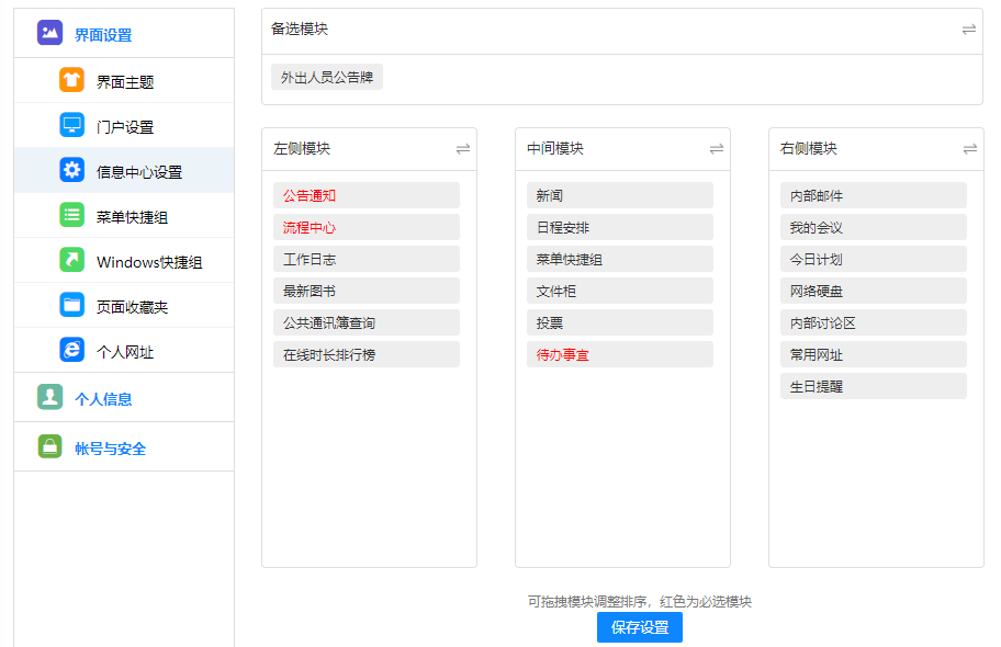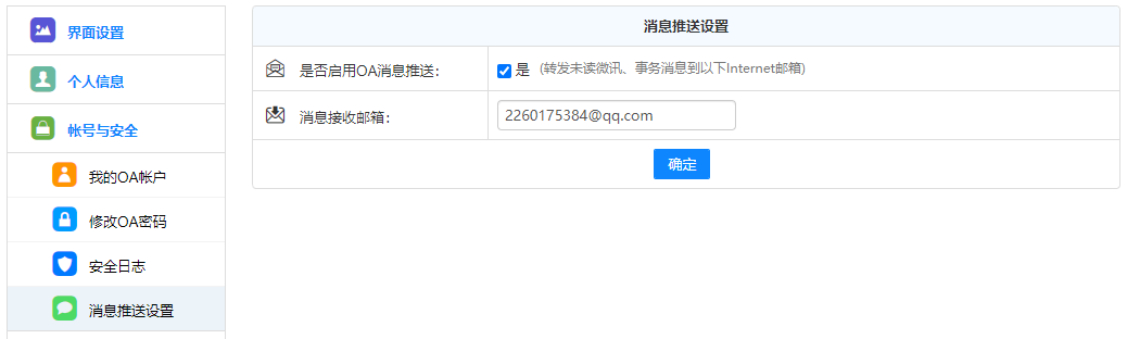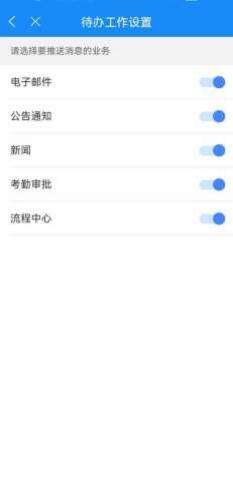 点击顶部的设置按钮,可以设置需要推送消息的业务,关闭后该模块的业务不会在待办 中进行提示。