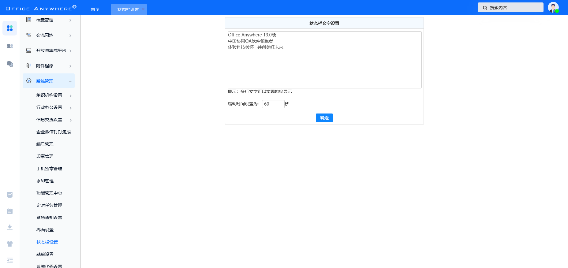 使用通达OA系统软件必须注册成正版软件才能正常使用。当您注册时,需要找到商品包装盒中附带的“Office Anywhere 通达网络智能办公系统最终用户许可协议”,使用协议内的“软件序列号”进行注册。注册的方法详见本手册第三章管理员手册中软件注册部分的内容。