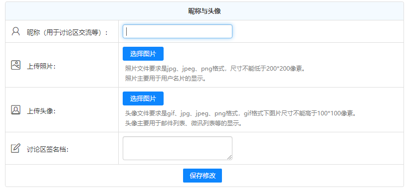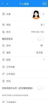 点击头像进入个人信息界面,在此界面可上传头像、性别等信息