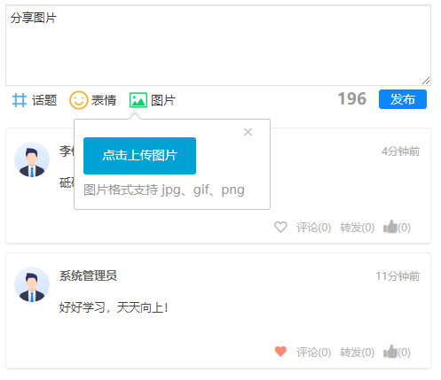 Android 和 iOS 客户端优化的功能有: IM 权限控制、个人信息修改、自定义头像、头 像裁剪、wps 在线阅读、图像的旋转、移动工作台、公文管理、督查督办等。
