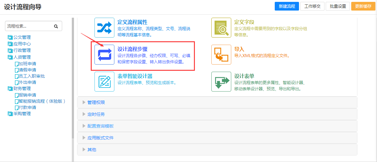 2.登录OA系统,进入流程中心->工作流设置->设计流程页面,使用设计流程向导,进行流程的创建,点击【新建流程】按钮,界面如下: