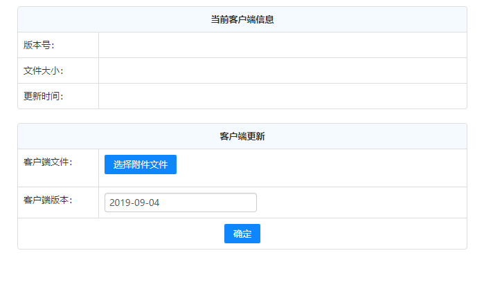 客户端升级界面,即可显示当前服务器即时通讯的版本、更新时间等信息,也可以导入文件对当前版本进行升级。