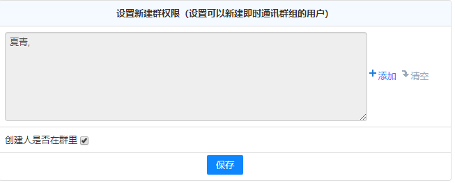 拥有新建群组权限的人员,就可以到【个人事务】-【消息管理】-【即时通讯群组管理】中新建群。