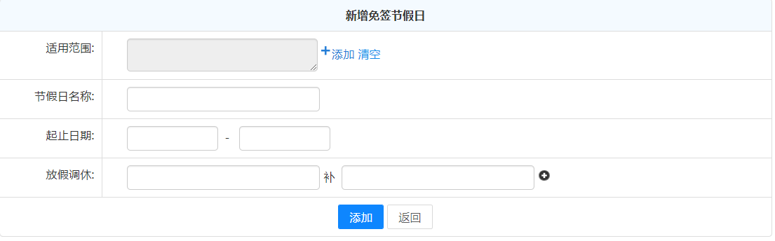 免签节假日:可以设置一些节假日的信息,节假日设置好之后,员工在节假日期间不用签到考勤,同时也不影响考勤统计和绩效,还可以设置放假调休。