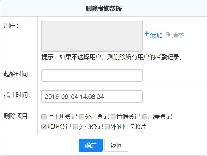 考勤数据管理,可以删除指定用户一段时间内的某项考勤数据,有利于提高考勤统计性能。