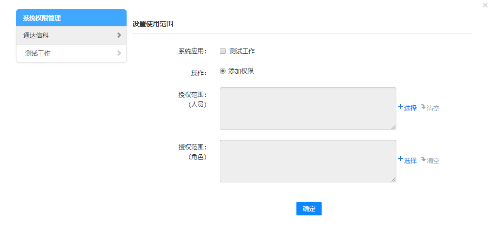 1.点击【权限设置】按钮,进入应用的授权范围界面。