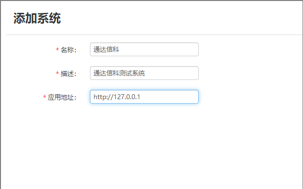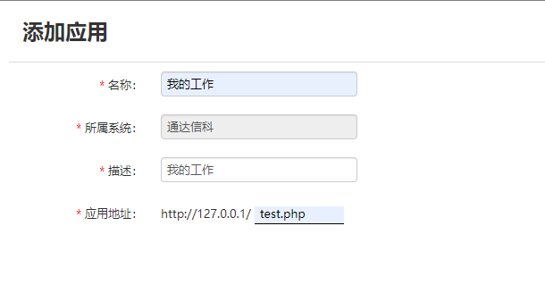 1.在添加应用界面,输入相应的应用名称、描述、应用地址: