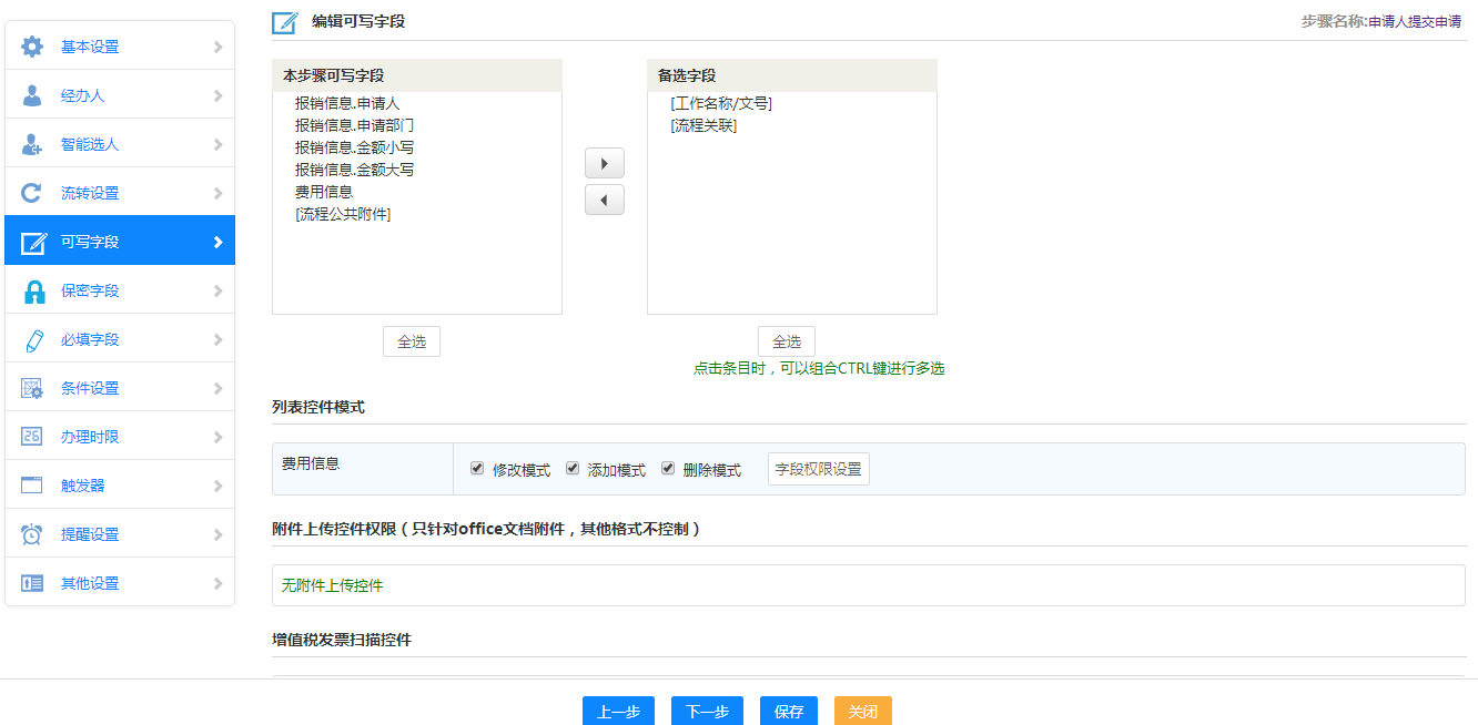 一个流程中可含有表单字段,也可以不含表单字段(即流程中不含有表单也可以进行流程的流转)。在此对含有表单字段的流程进行详解,无表单字段的流程不做讲解。