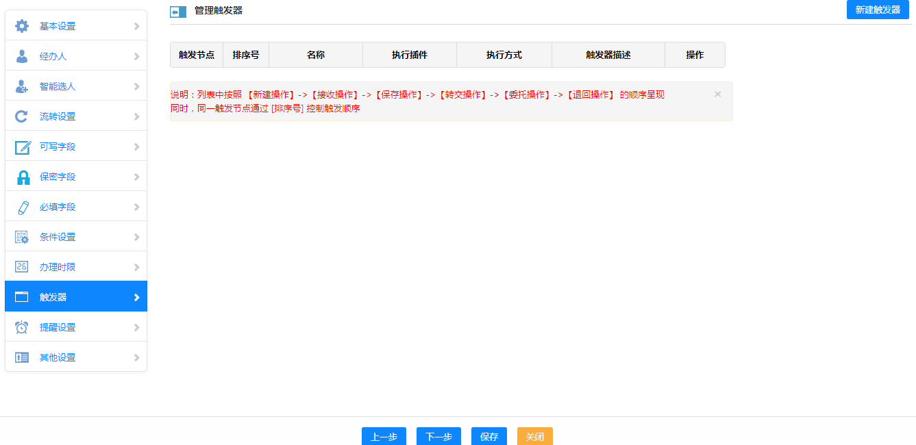 序号:序号应为数字,流程的开始步骤序号必须为1。
