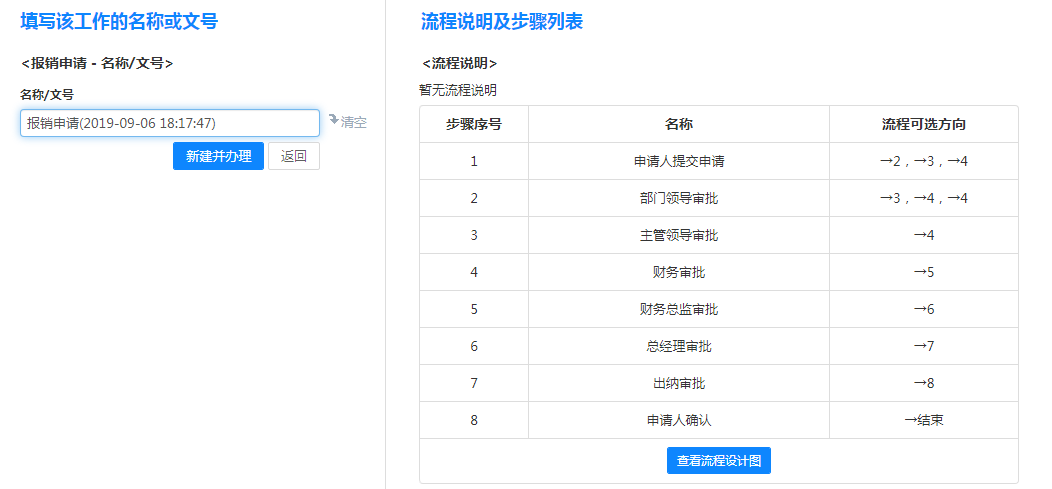 流程名称:流程名称可以根据公司所需的流程名称进行定义,流程名称不能重复。