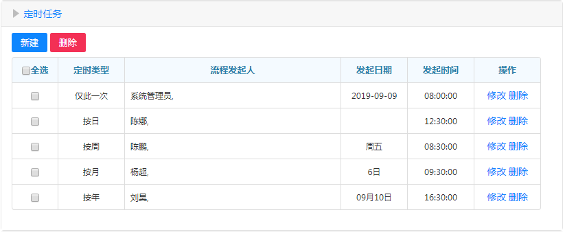 在定时任务管理里面可以设置新建流程和工作流超时催办的间隔执行时间,也就是系统检查数据库的间隔时间,如果发现有新建流程任务和工作流超时现象就会事务提醒步骤的主办人。