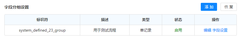 【报销信息】分组创建成功后,可以对分组字段进行编辑、删除、字段设置