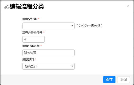 流程分类:对流程进行分类管理,便于流程的查找和修改。此处可选择的分类就是在【流程分类】里面设置好的。