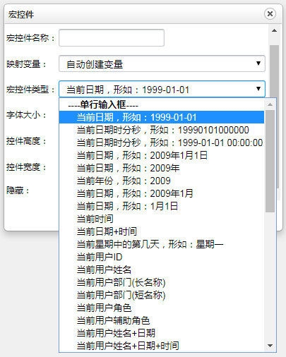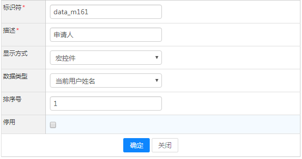 宏控件作用:系统数据库中的经常用到变量,如当前用户姓名,当前日期等,可以直接调用,不用您手动输入,提高填单速度,使得流程中心的表单填写更加智能与方便。比如,我们请假时,一般申请请假人都是当前登录用户,在表单智能设计器中,就可以用宏控件,取值为当前用户姓名。