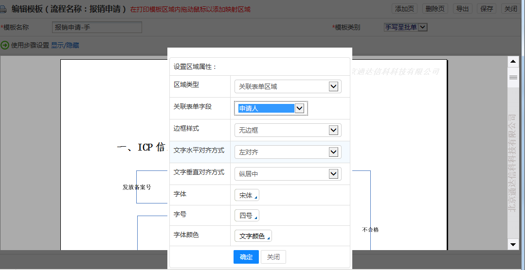 5. 具体做法:在制作套红文件时,插入与表单控件名称对应的书签(比如表单上有“申请人”字段,则在套红文件也插入名称为“申请人”的书签),这样在附件上套红时就可以将表单控件的数据带到附件中。 举例:将表单的申请人、申请部门、金额小写、金额大写字段映射到Word附件中。