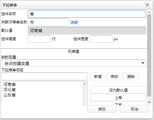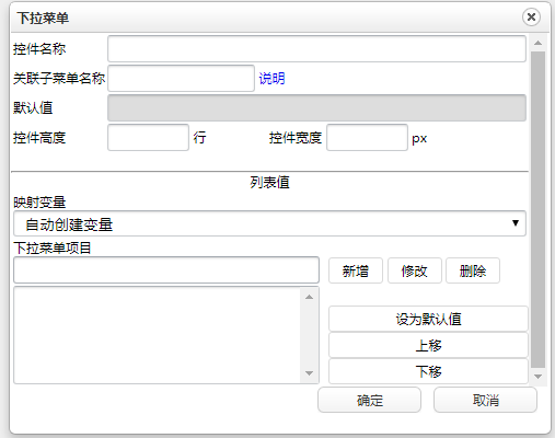 1)值:当类型为下拉菜单、单选框或复选框时,可以指定缺省值。