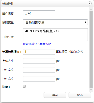 2)计算公式:可以指定计算后的值保留的小数位数。