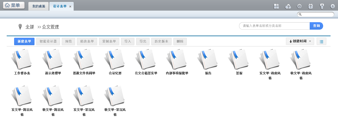 工作流表单设计功能为您提供智能表单设计器,支持在线设计表单,内置十八种表单控件,另有网页手写签章,一经授权不限点数,为您简化表单制作过程,您不再需要为设计表单而烦恼,帮助您实现复杂数据的录入。